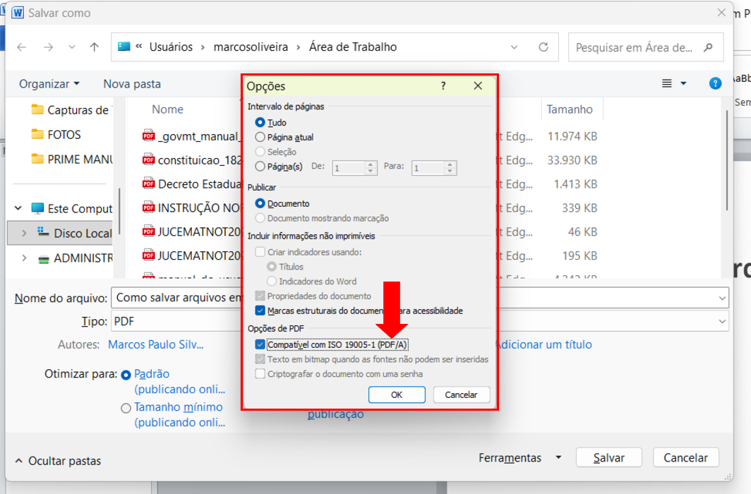 Passo 8 - Clique em Compatível com ISO 19005-1 (PDF/A).
