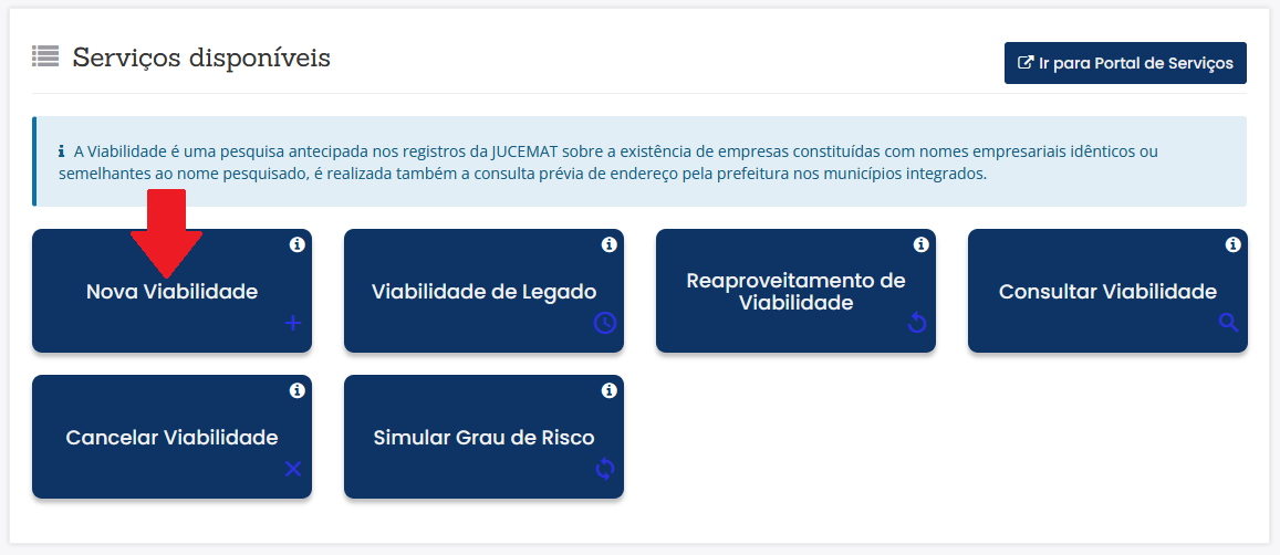 1º Após acessar o módulo "Quero Alterar dados da empresa", Vá em VIABILIDADE